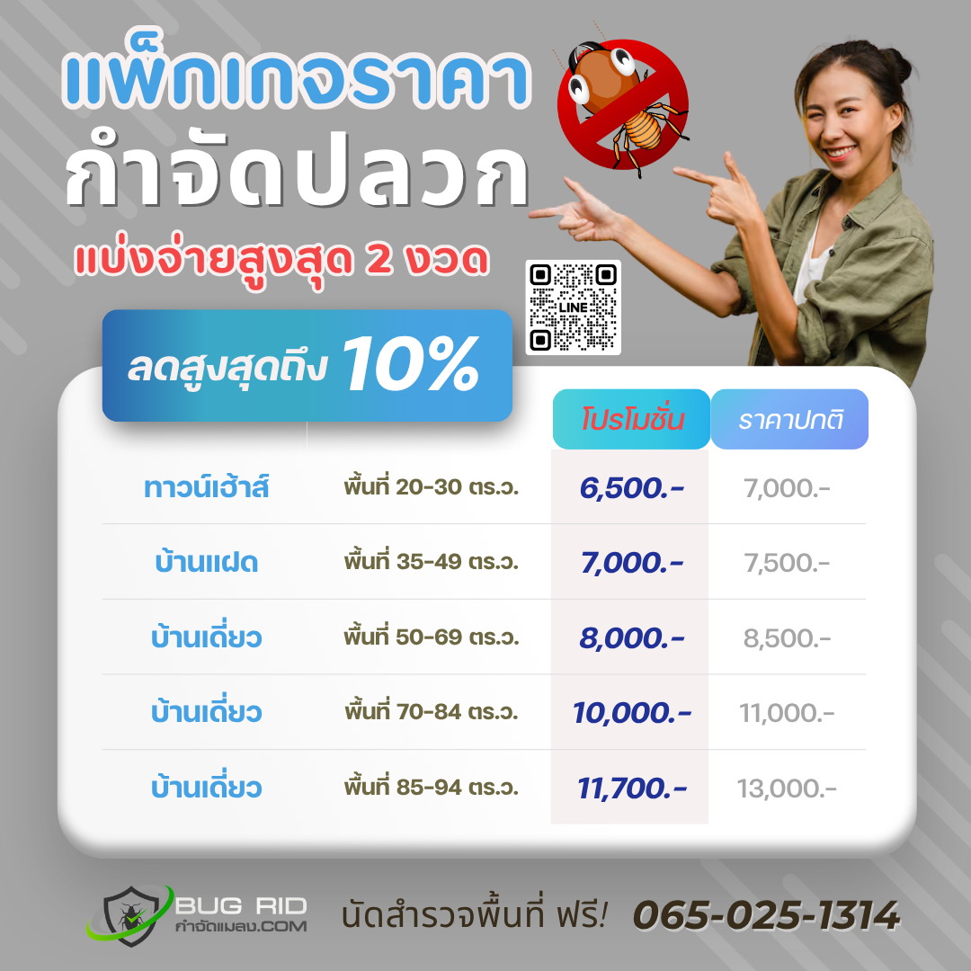 📌 โปรโมชั่นพิเศษ ราคาเพียง 6,000 บาท | 6 เดือน / ครั้ง สัญญา 1 ปี ภายใน 1 ปี เจ้าหน้าที่จะเข้าอัดน้ำยาให้ 2 ครั้ง ทุกๆ 6 เดือน โปรโมชั่นเดือนนี้ แถมฟรี! ฉีดมด & แมลงสาบ รอบ ๆ บริเวณบ้าน